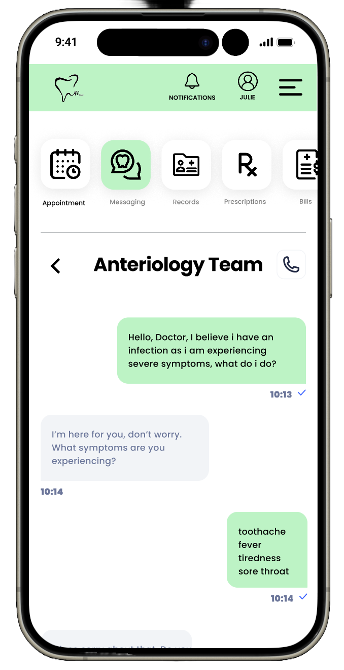 Molarity boasts the critical features such as Messaging System with your dental provider, Appointment System to conveniently manage your bookings at the comfort of your home, and Records System to view/transfer your PHI at the tip of your finger to stay updated, and MANY MORE to come