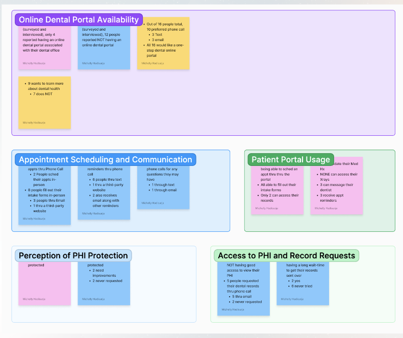 As I synthesized the affinity map with the foundational research that I’ve gathered, I paid particular attention to the challenges patients face with their current dental management system.